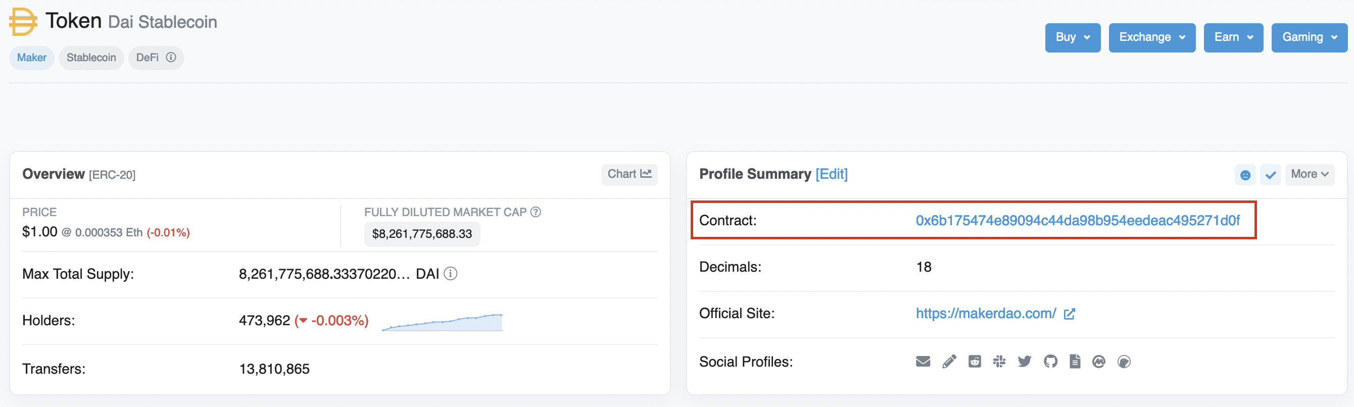 // DAI token contract